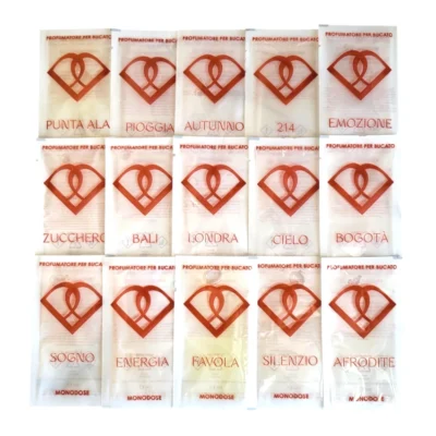 Wasparfum proefpakket van ons mooie Italiaanse merk Profumiamo met 15 zakjes van elk 10 ml (een mix van de meest populaire geuren).